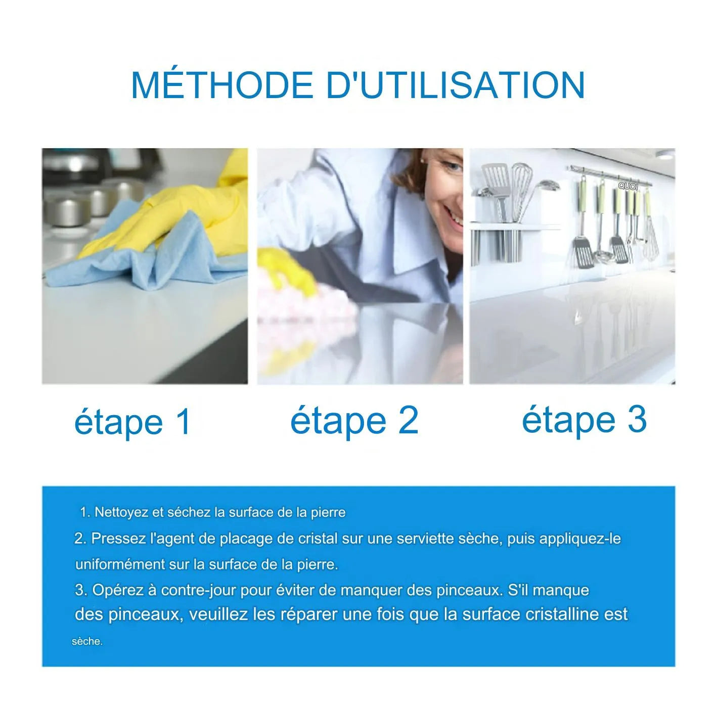 Obtenez des résultats instantanés ! Notre agent de polissage vous garantit des pierres qui semblent neuves dès la première utilisation. Fini les surfaces ternes et défraîchies !