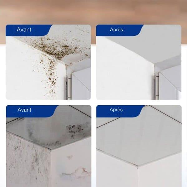 Notre spray peut être utilisé en toute sécurité sur différentes surfaces, y compris les baignoires, les terrasses, le bois, les revêtements en vinyle, les cloisons sèches, les sols en béton, les murs en briques et bien d'autres. Avec notre spray, vous pouvez dire adieu aux taches de moisissure, où qu'elles se trouvent dans votre maison.